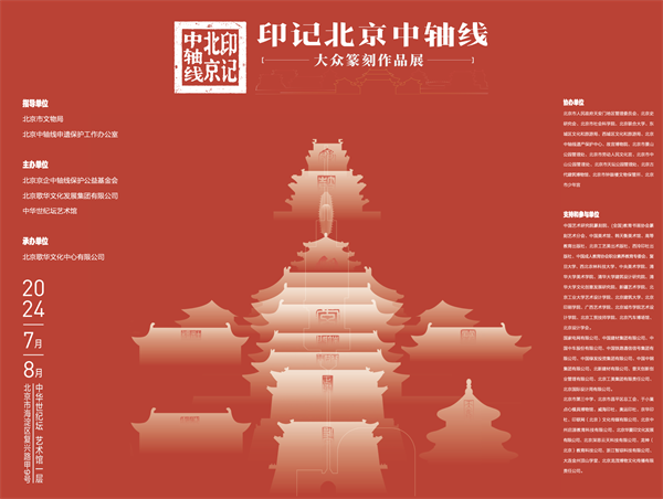 展覽由北京市文物局、北京中軸線申遺保護工作辦公室指導,北京京企中軸線保護公益基金會、北京歌華文化發展集團有限公司、中華世紀壇藝術館主辦,北京市人民政府天安門地區管理委員會、北京史研究會、北京市少年宮等單位聯合協辦。展覽活動還得到了中國藝術研究院篆刻院、(全國)教育書畫協會篆刻藝術分會、中國美術館、高等教育出版社、復旦大學、西泠印社出版社、國家電網有限公司、中國建材集團有限公司、中國中車股份有限公司、中國中鋼集團有限公司、北京工美集團有限責任公司等單位的大力支持和積極參與。